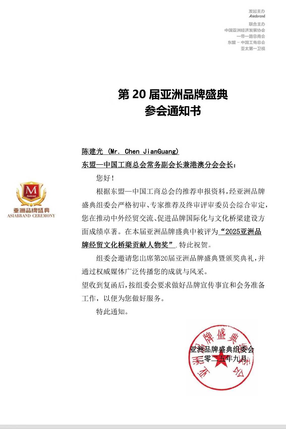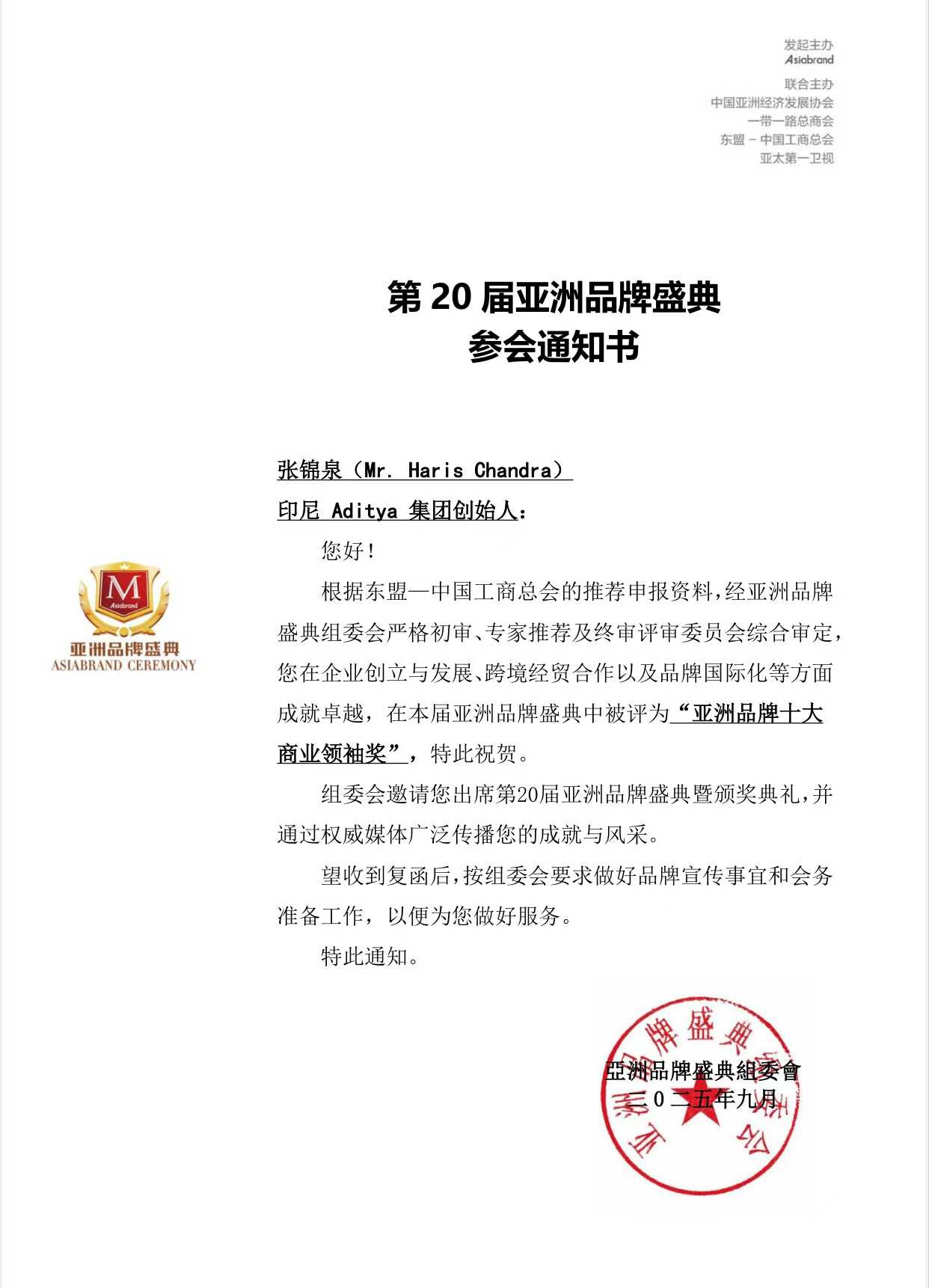 在20届亚洲品牌盛典中被评为“亚洲品牌•郑和文化国际交流贡献人物奖”,特此祝贺。