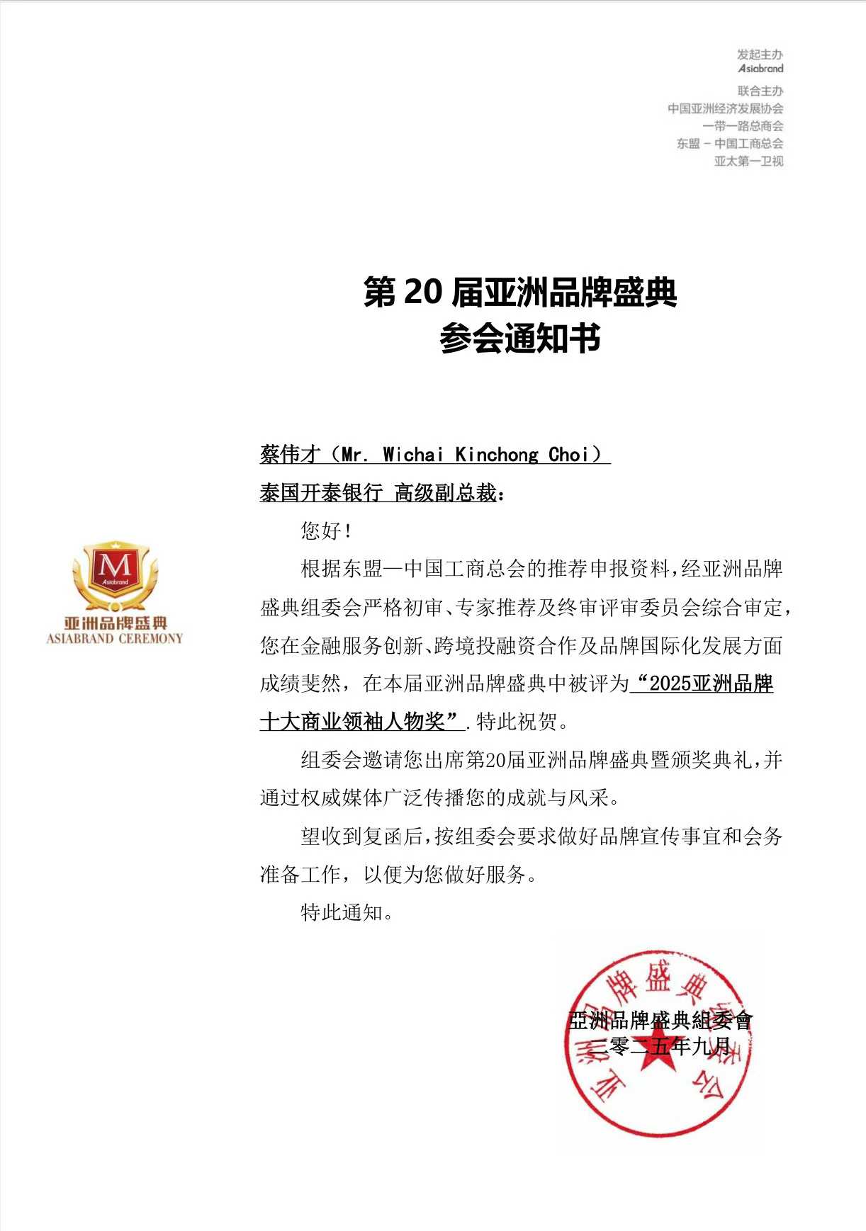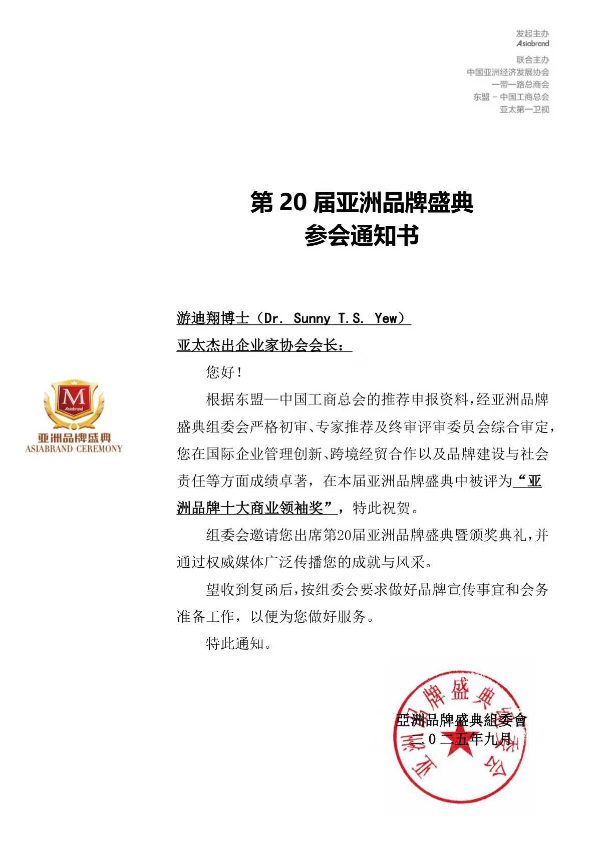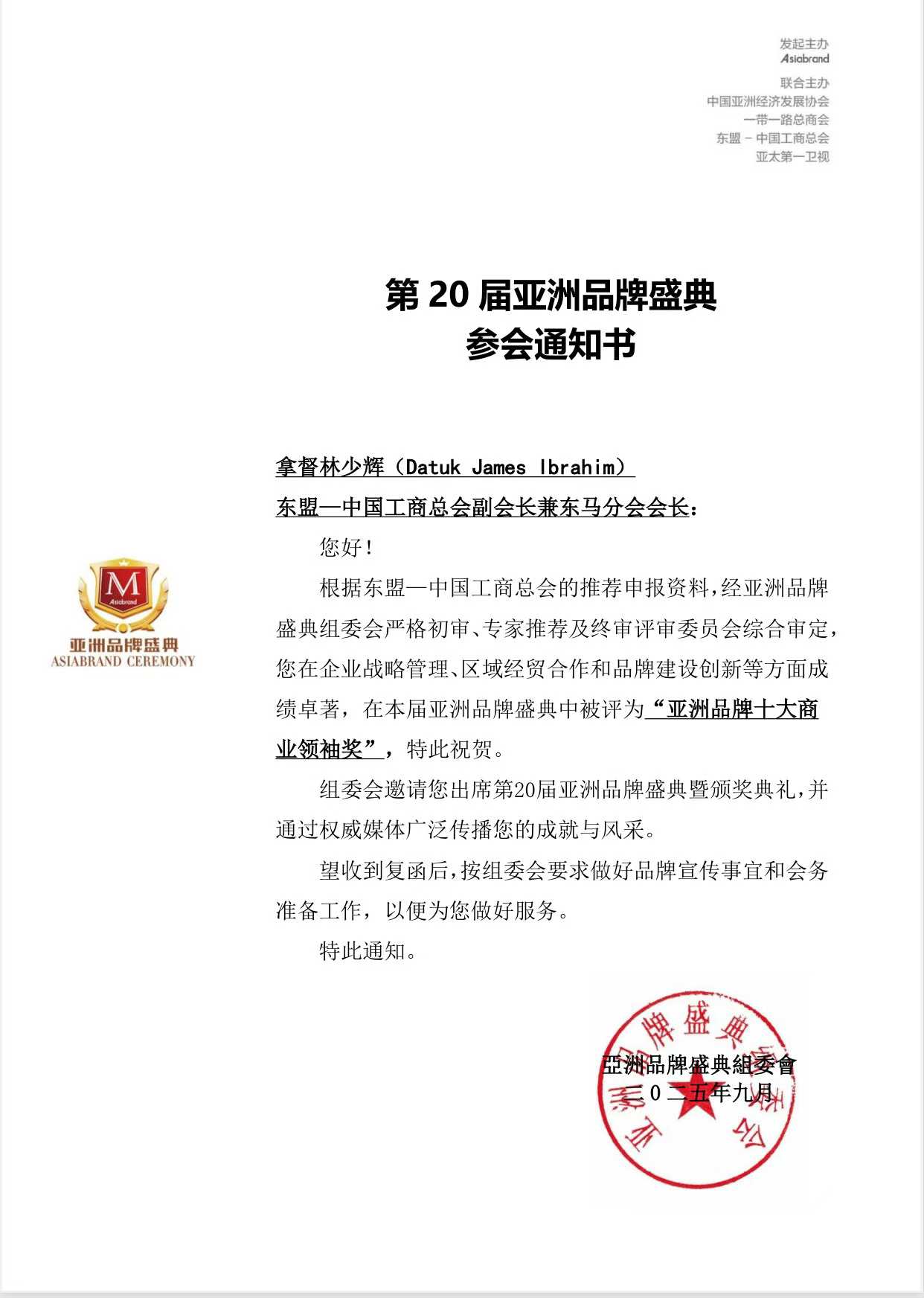 在20届亚洲品牌盛典中被评为“2025亚洲品牌