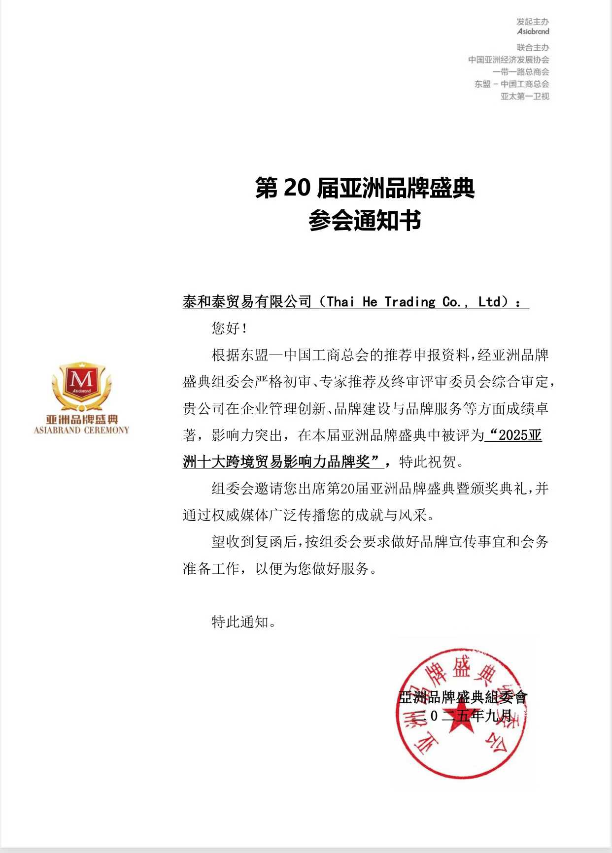 洲十大跨境贸易影响力品牌奖” 特此祝贺。