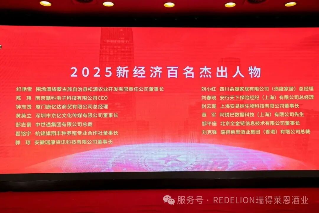 瑞得莱恩酒业荣膺《2025中国创新品牌500强》,总裁刘克锋先生获评《2025新经济百名杰出人物》。站在新的起点,瑞得莱恩酒业将继续以品质为基石,不断创新,深耕有机、珍品、收藏级多元产品线,讲好中国葡萄酒品牌故事,踏实践行高质量发展。