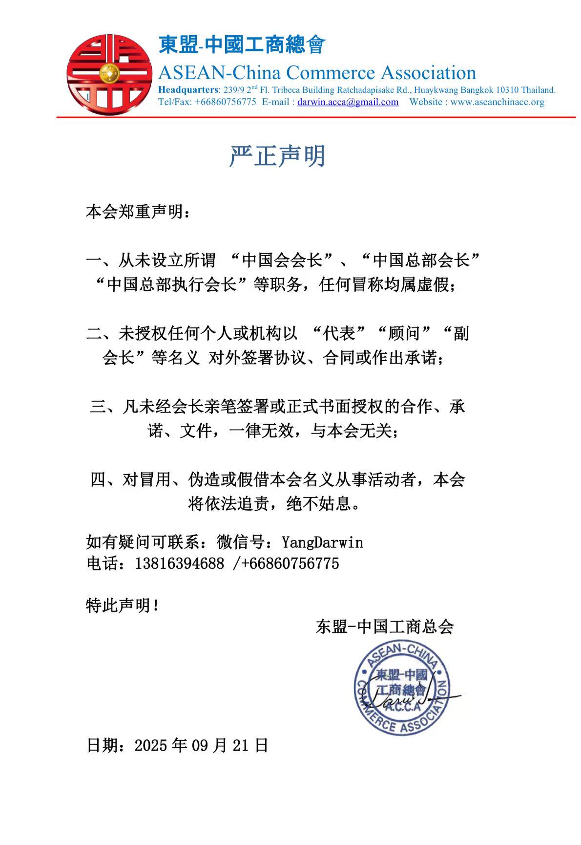 东盟-中国工商总会 暨泰国-新加坡企业家商务对接会议 2024年11月21至22日 @曼谷王子宫殿酒店